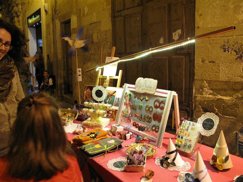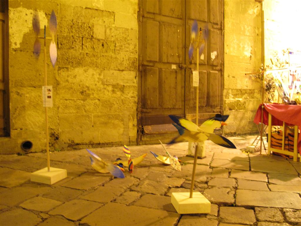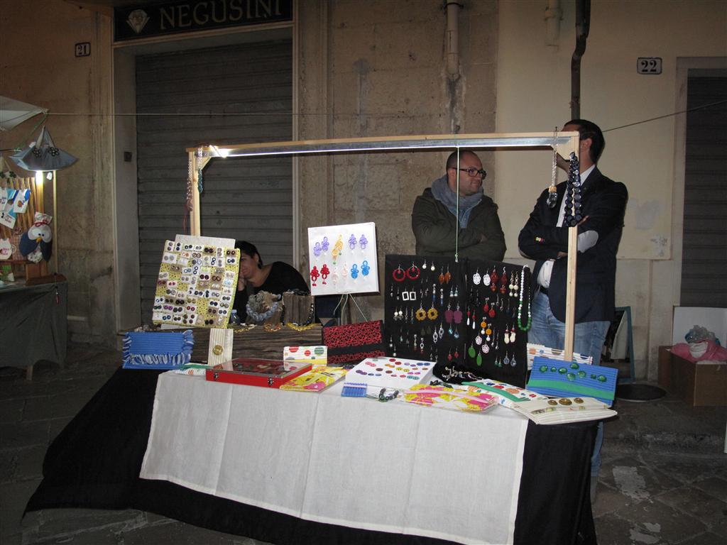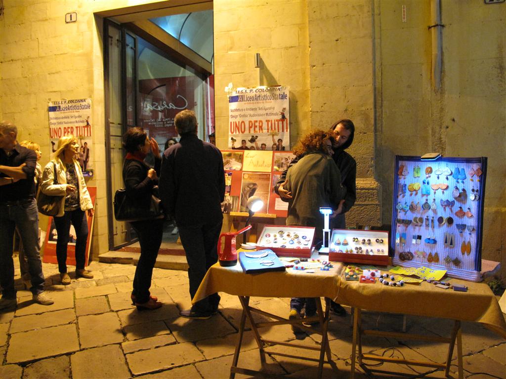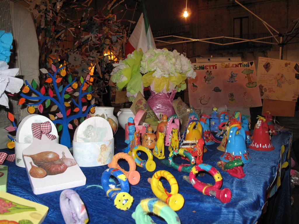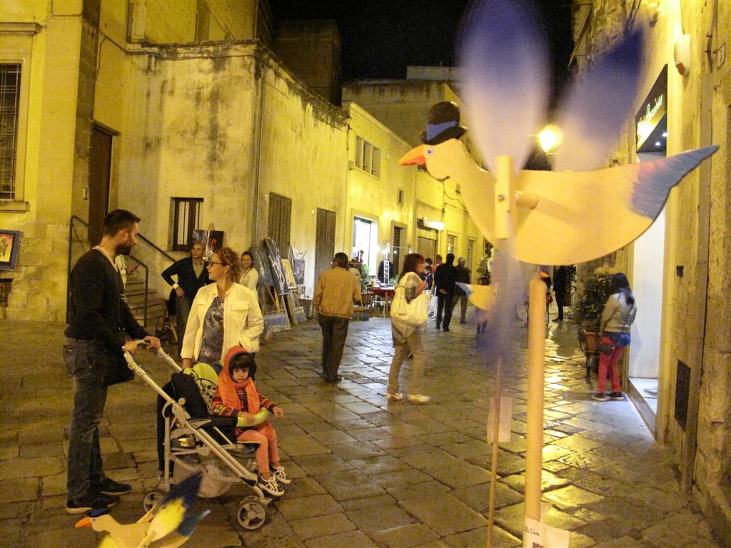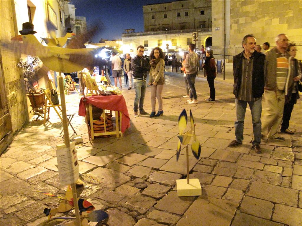 I veterani del Liceo Artistico hanno, come al solito, incantato con la perfezione delle loro opere esposte nelle vetrine di 'Carusa'. Singolare è stata la presenza della 'famiglia Di Vento': sagome di uccelli con le ali che si muovono ad ogni soffio di vento. In via Vittorio Emanuele II hanno esposto quindici abili artigiani di manufatti salentini: dai canestri, ai cucchiai in legno, dai 'ciondoli' in vetro a quelli in ceramica.