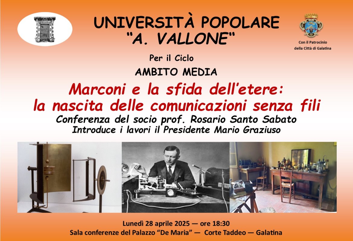 Oggi lunedì 14 aprile 2025 alle ore 18:30, nella Sala conferenze “De Maria”, in Corte Taddeo, è prevista una prima le