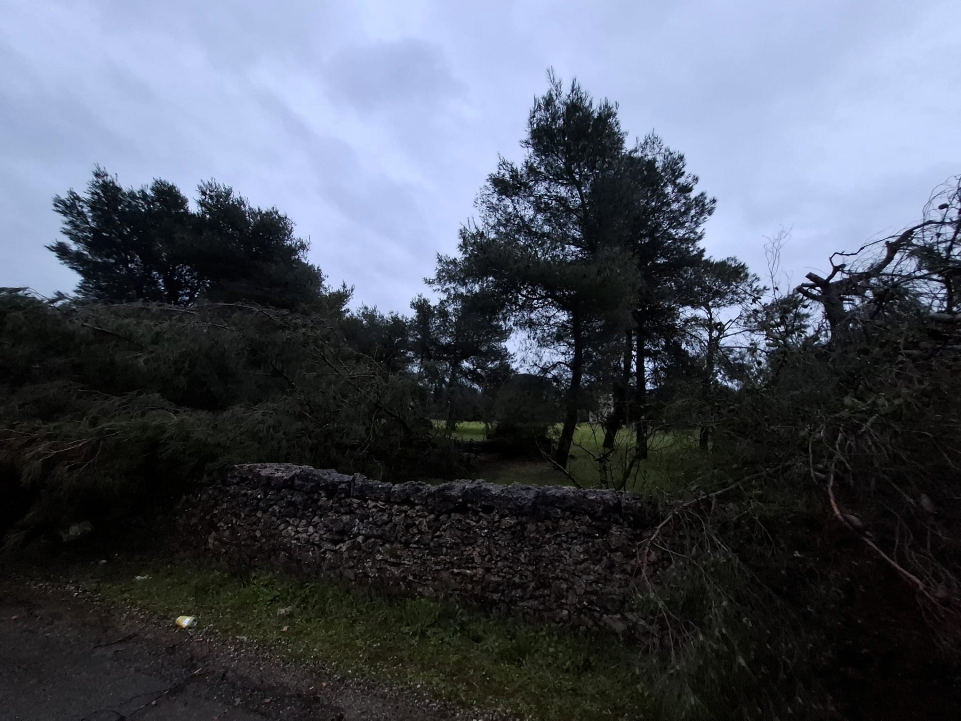 I Vigili del Fuoco, intervenuti da Maglie, stanno provvedendo a rimuovere gli alberi caduti.